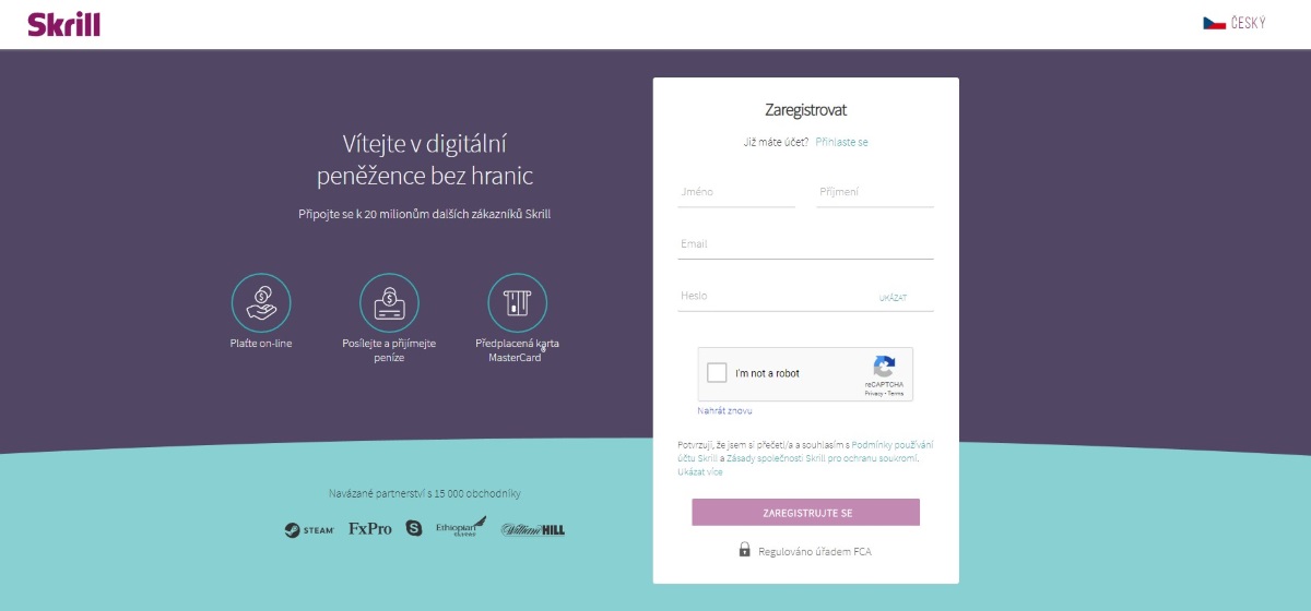 Skrill je k dispozici kompletně v češtině, což Vám registraci i jeho užívání dost usnadní. Za vytvoření účtu nic neplatíte a vše navíc probíhá velice rychle. Dbejte však na to, abyste při vyplňování registračního formuláře uváděli správné a pravdivé údaje. Pro dokončení registrace je třeba ještě verifikovat e-mailovou adresu. Abyste mohli Váš Skrill účet využívat naplno, budete požádáni o doplnění a ověření pár dalších údajů. Jedná se zejména o ověření totožnosti a bydliště. Jakmile tento proces dokončíte, můžete si v klidu užívat všech výhod, které Vám Skrill nabízí.