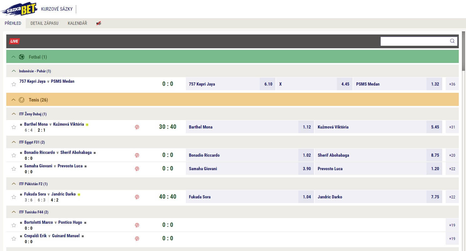 SazkaBet nabízí velice zajímavou funkci, na kterou nejsme v tuzemských končinách zvyklí. Běžně totiž bývá zvykem, že musíte sázet zvlášť předzápasové a zvlášť live sázky. U této sázkové kanceláře to však neplatí a Vy je tak můžete kombinovat dle libosti. Rozhodně to stojí za vyzkoušení, protože tímto způsobem se dají vytvořit opravdu zajímavé tikety.